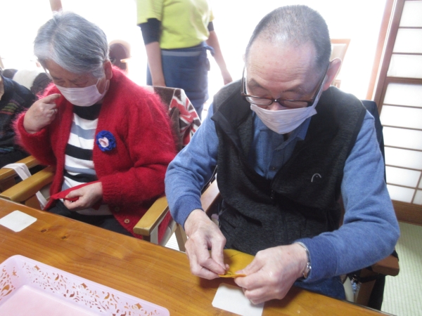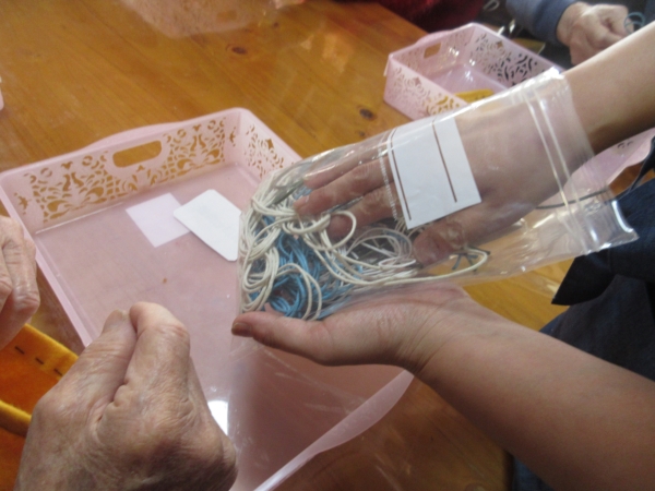 スタッフかなちゃんが「何色の紐がいいですかexclamation and question」と紐を配りますexclamation