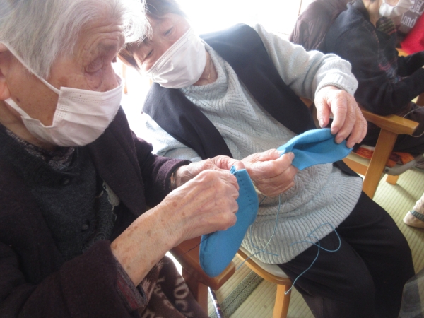 「昔は繕い物を良くやったのよ」…と最年長の母。