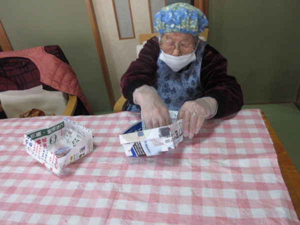 野菜くずなどを入れる広告チラシで作ったゴミ箱も