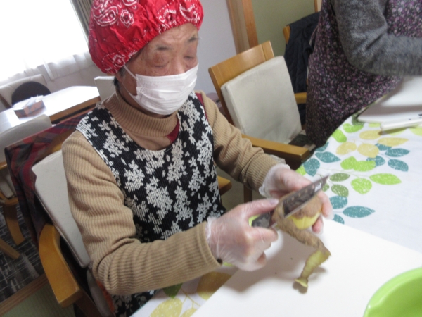 ピーラーを使わないで手際良く包丁で皮を剥いてくれました