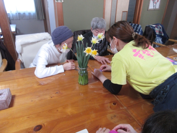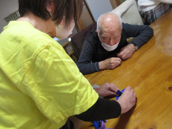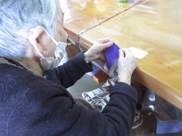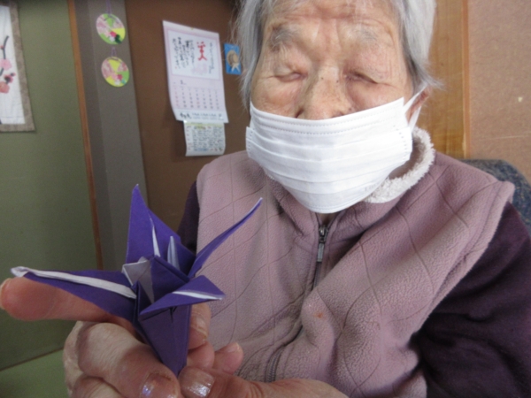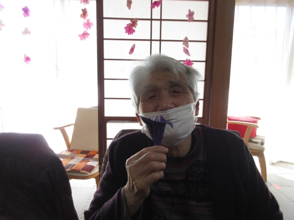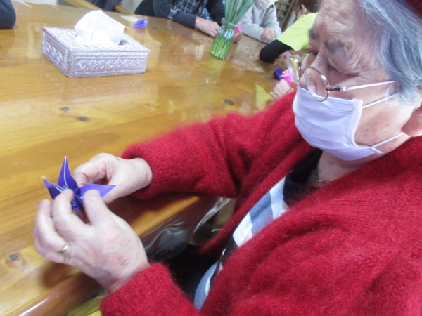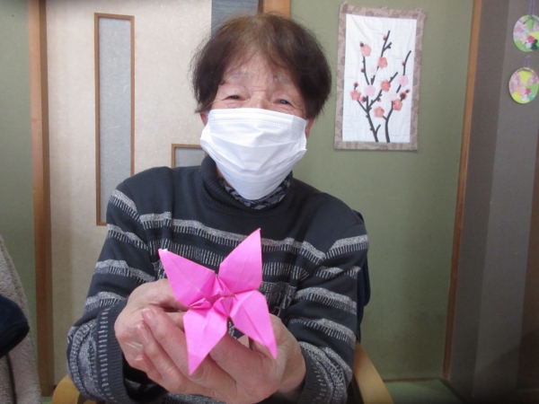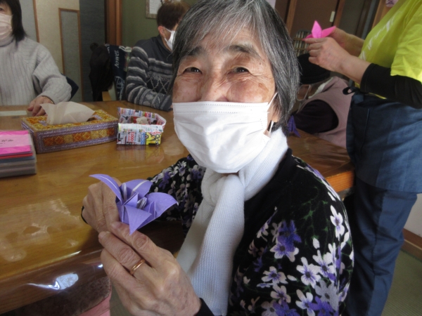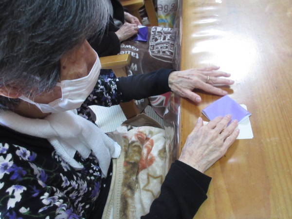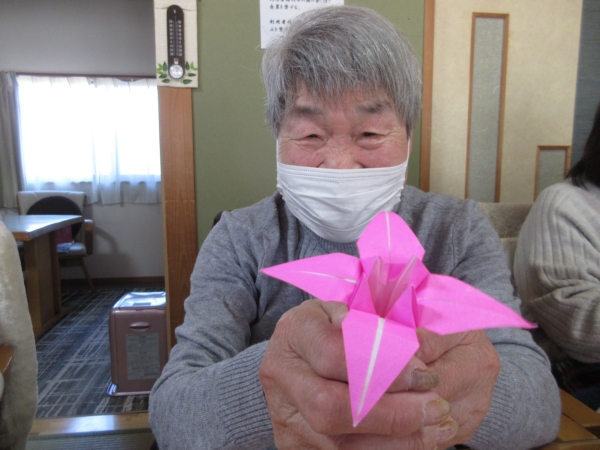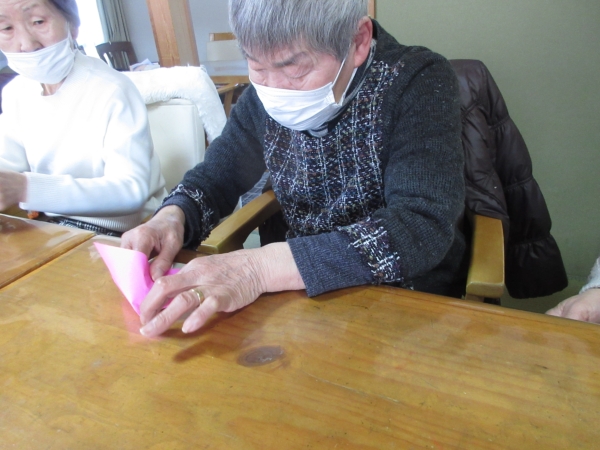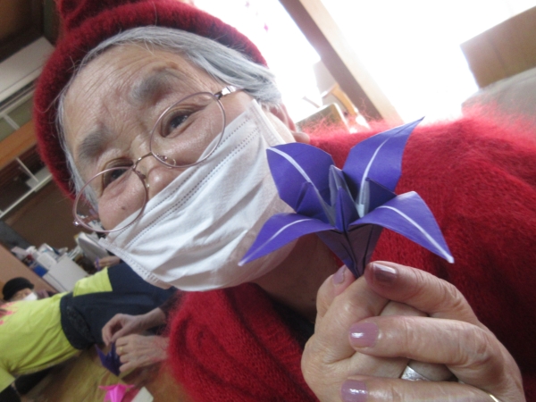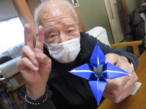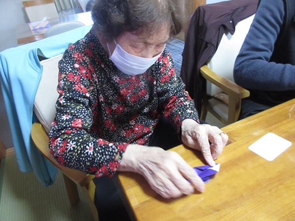 午前中は、折り紙でアヤメを作っていきますようれしい顔ハートたち (複数ハート)