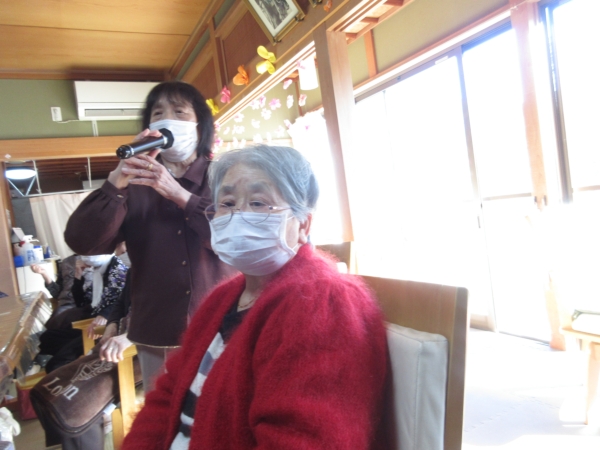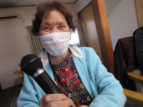 『カラオケしたいグッド (上向き矢印)るんるん (音符)』との声がうれしい顔手 (チョキ)