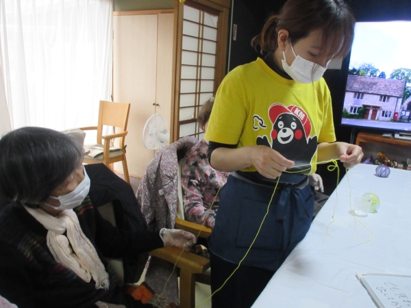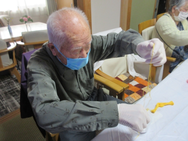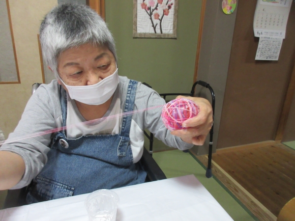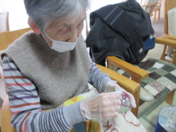 母は、「手袋をしているとうまくできない」…と手袋を外して巻き巻き