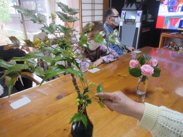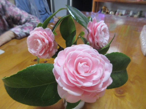 幸せの父のお庭に咲いた柊と椿の花を「テーブルに飾って下さい」…と