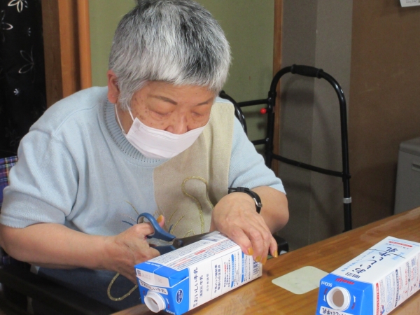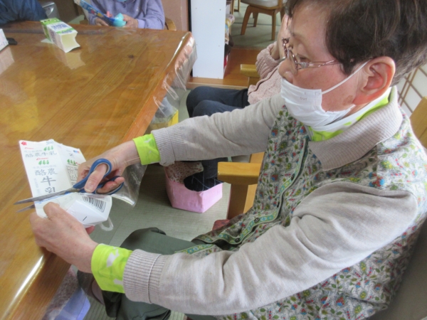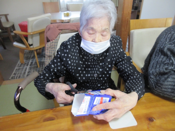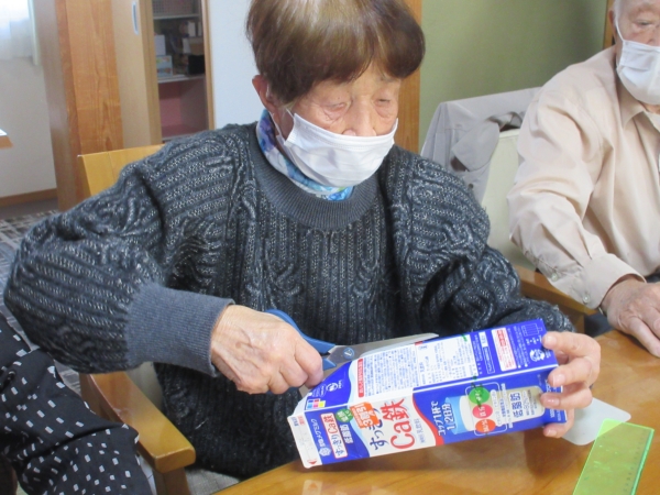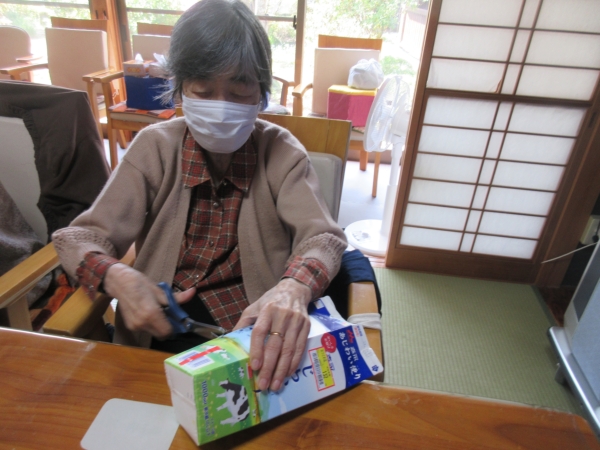 今日は、牛乳パックを再利用してフラワーアレンジメントを行って行きます