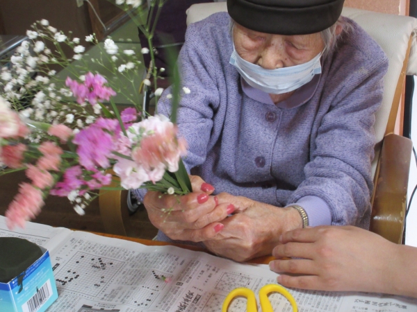 お花の長さを決めて、水を沢山吸い上げる様に、