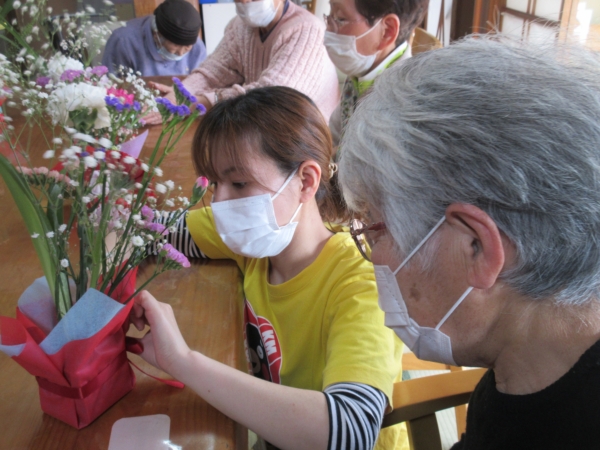 素敵な花束ができたので、お家へ持ち帰って長持ちさせて下さいね