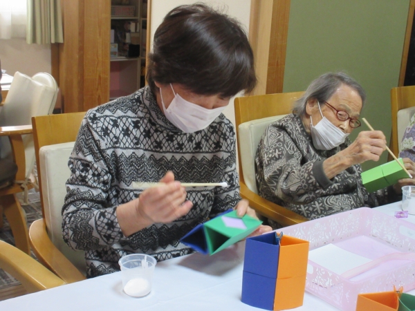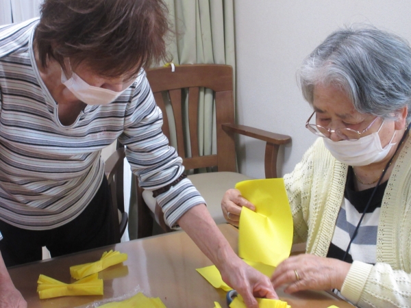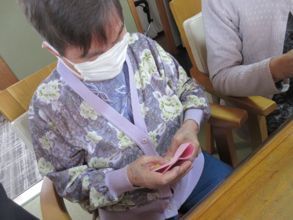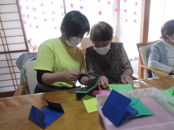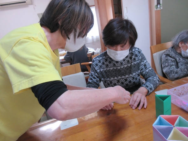 スタッフかなちゃんも母に寄り添い優しく丁寧に教える