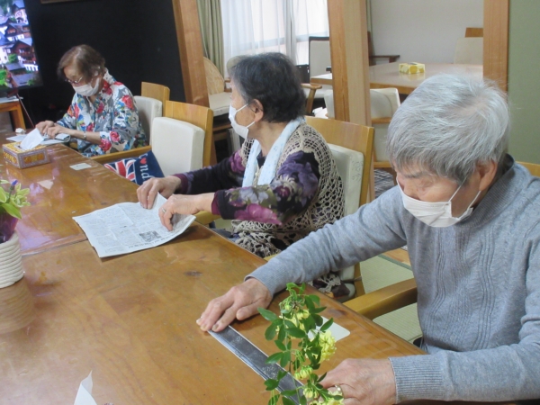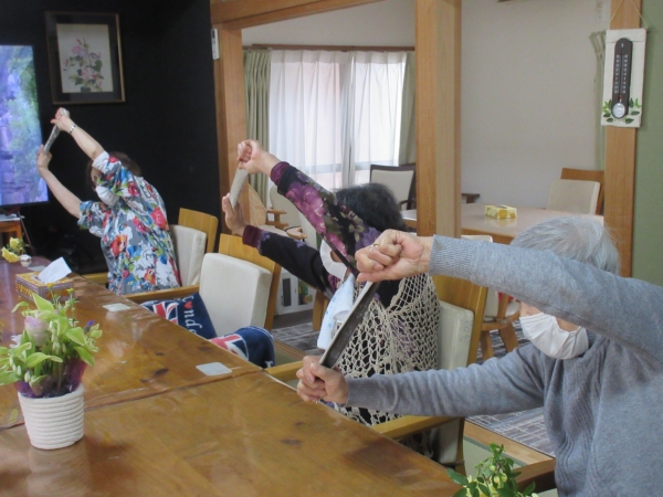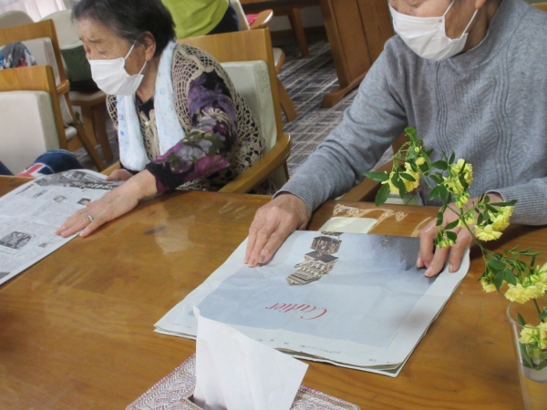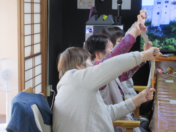 せっかく新聞紙があるので、ちょっとだけ指と上肢の体操も行っちゃいました。