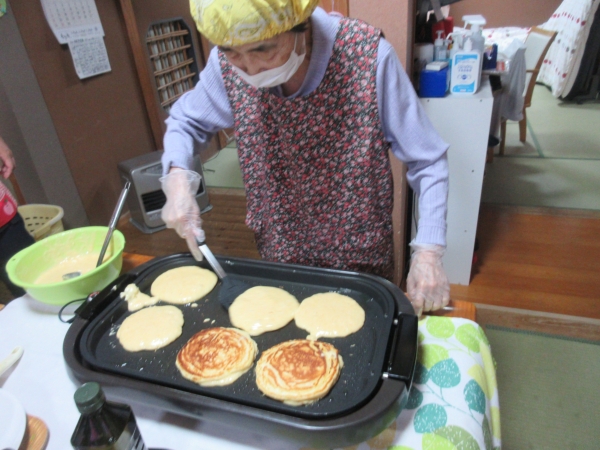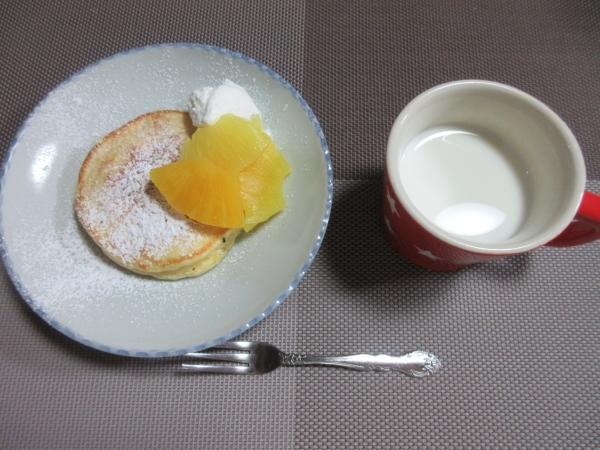 卵白をメレンゲにして加えた事で、ふわふわなパンケーキができました