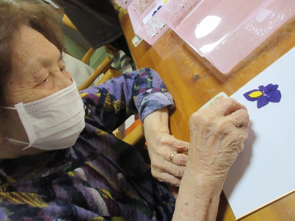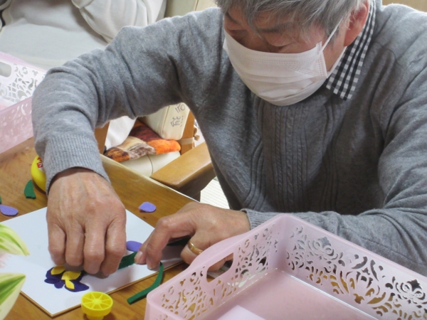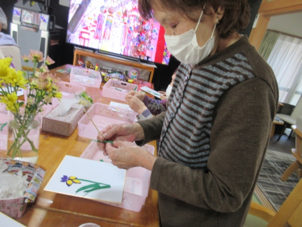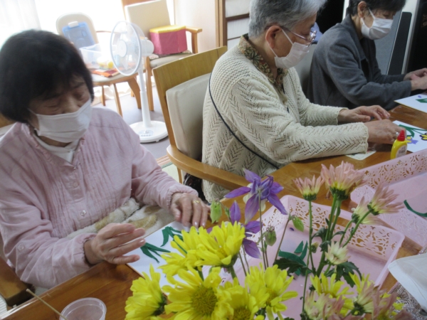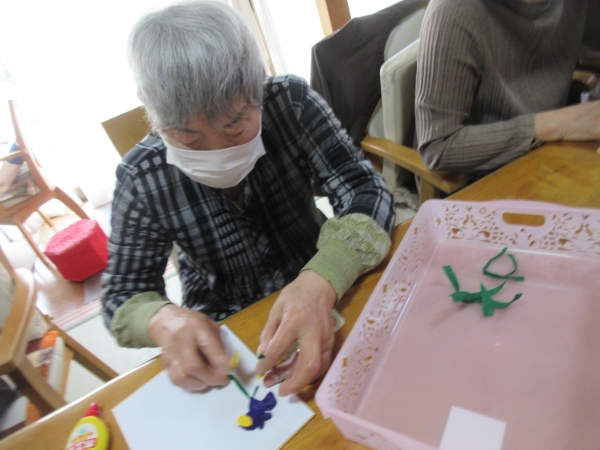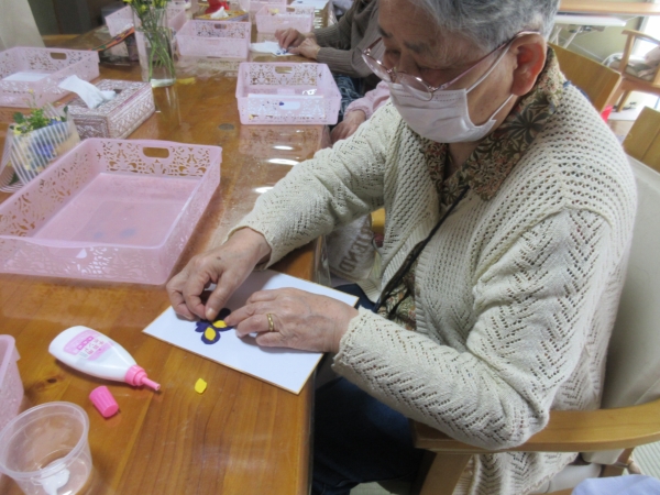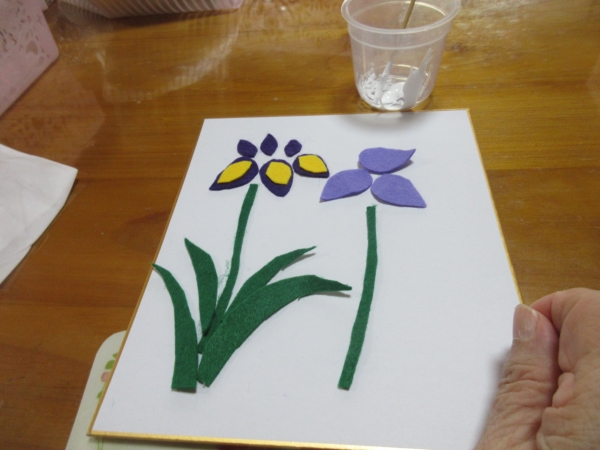 カットした花びらを、色紙に貼って行きます
