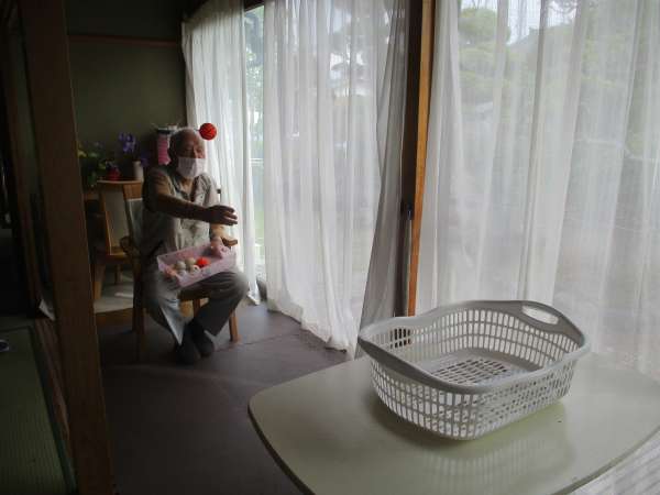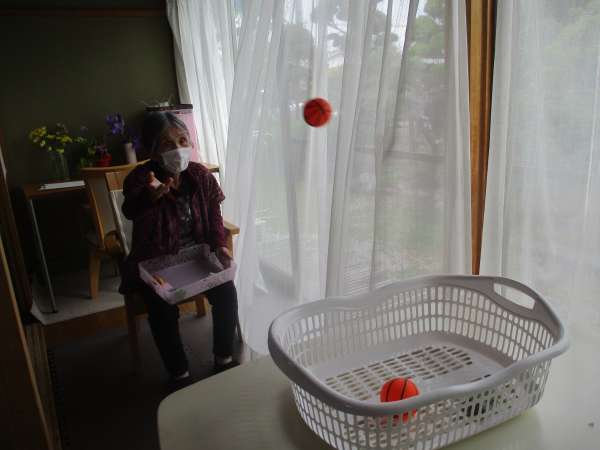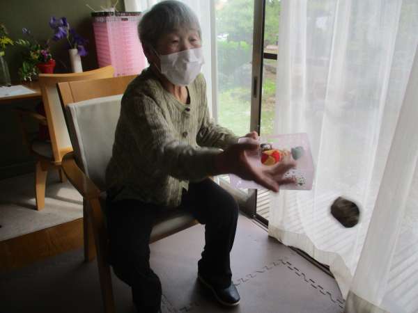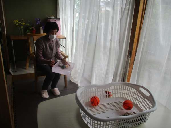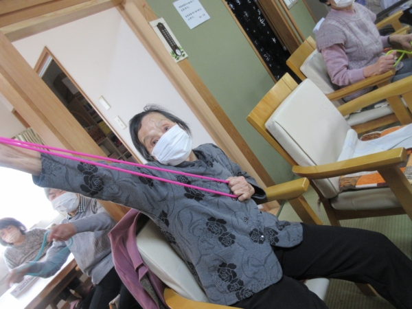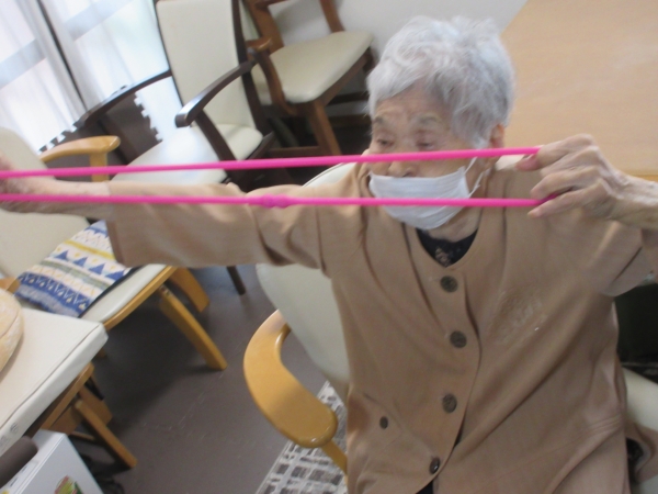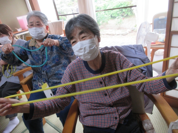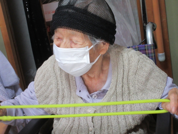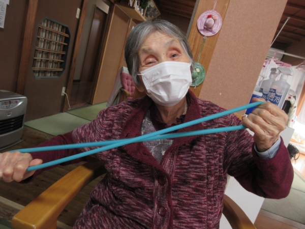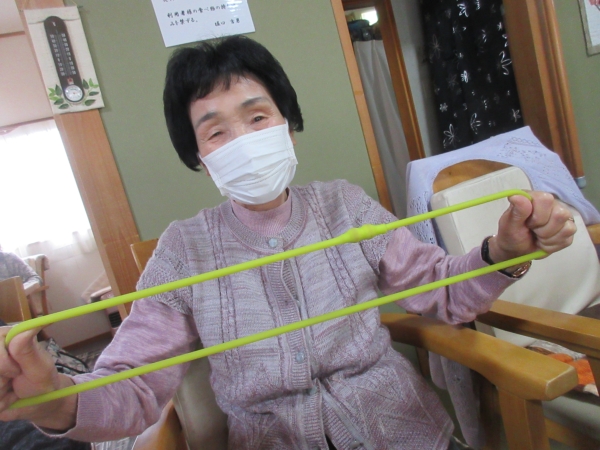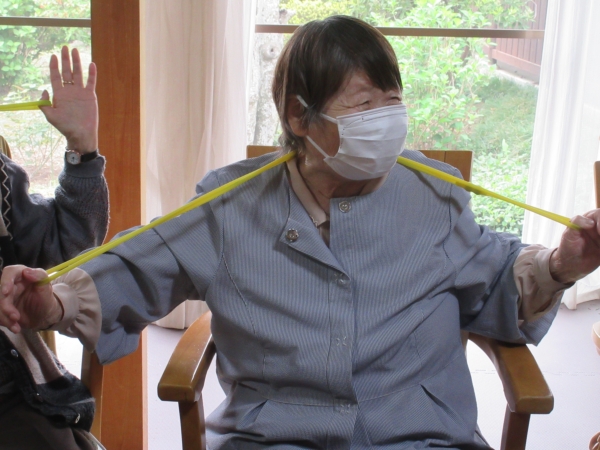 午前中はゴム体操で身体を動かします