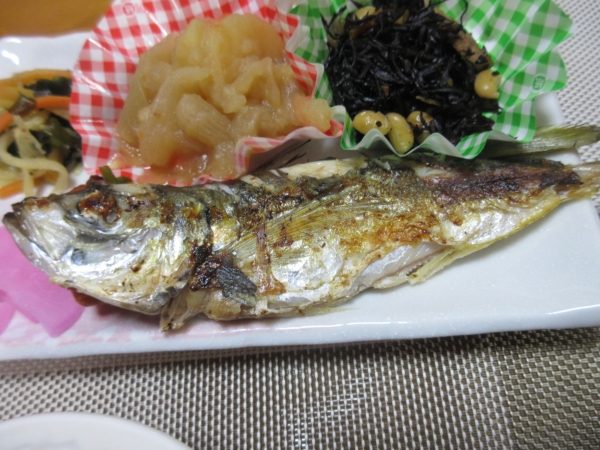 捌いた鯵を丸ごと一匹を焼いてお昼ごはんに召し上がって