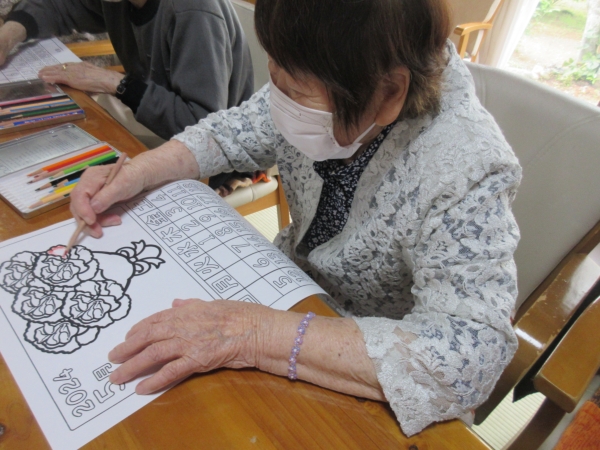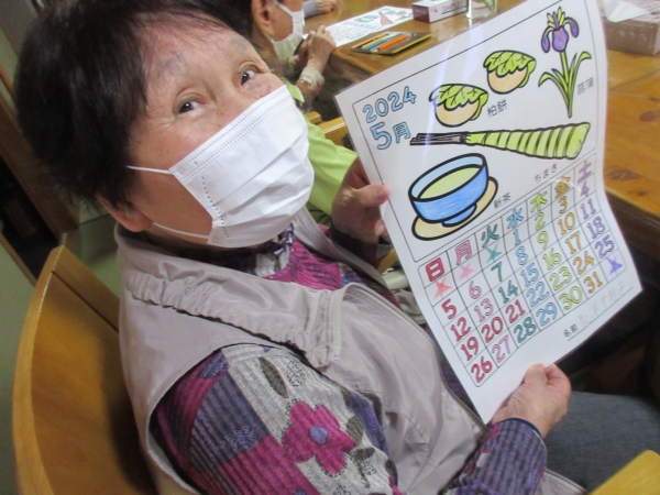 カレンダーとぬり絵をして頂きました
