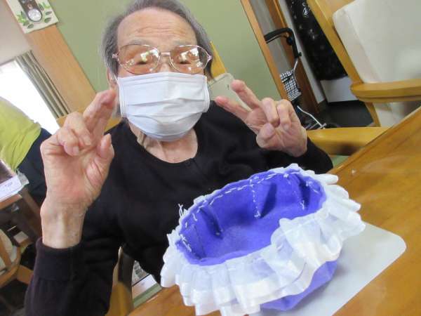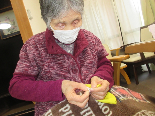 テキパキと一番最初に縫いあげていく母うれしい顔指でOK