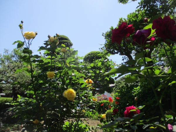 黄色に赤にピンクの薔薇も綺麗に咲いています