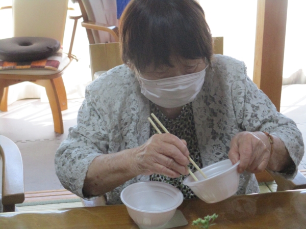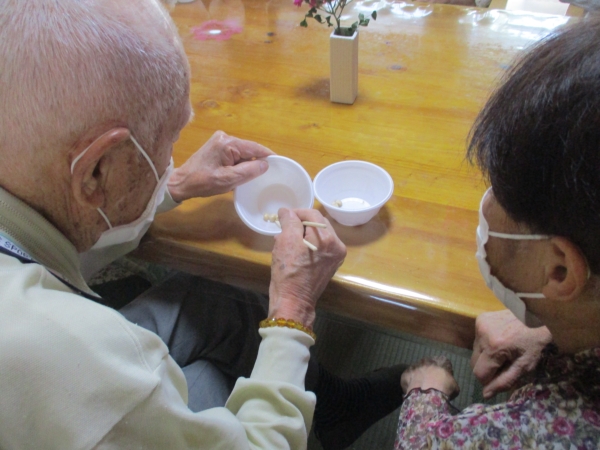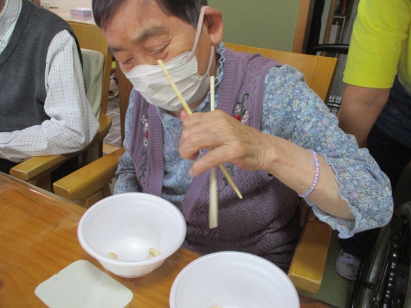 お次は箸を使い豆10粒を別の容器に移していきましょう