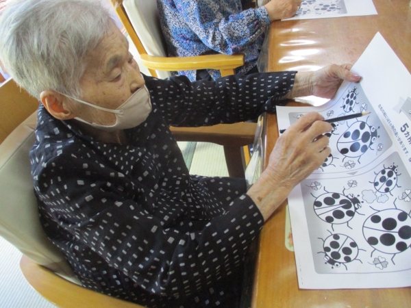 脳トレで頭の体操を行い