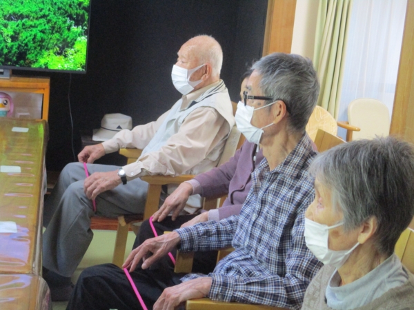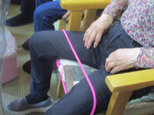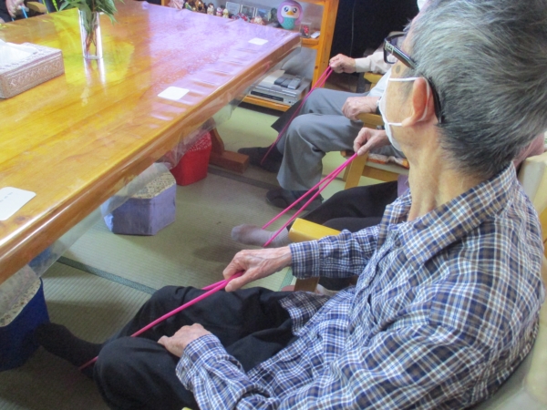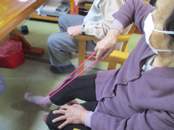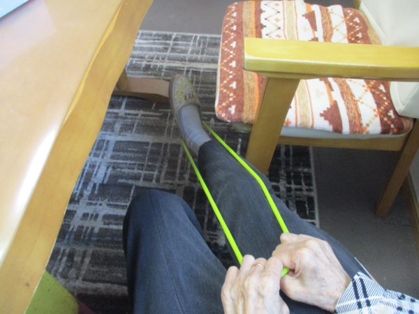 今日はゴムを使って、転倒予防の体操をして行きたいと思います。