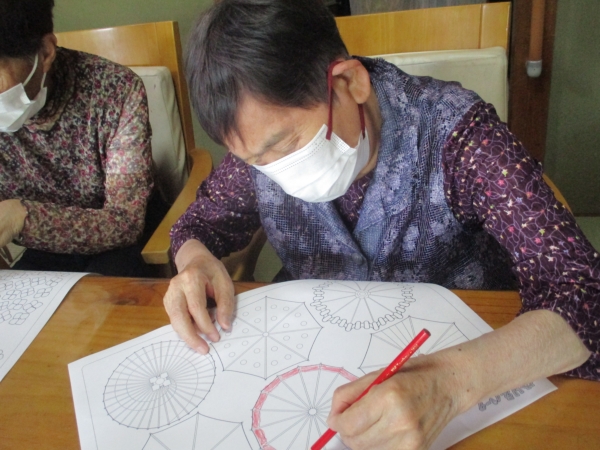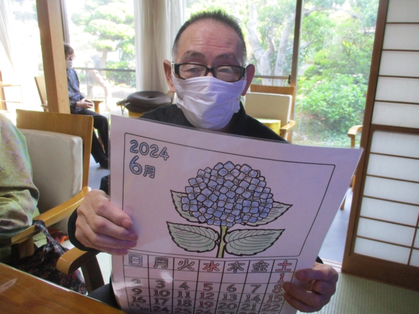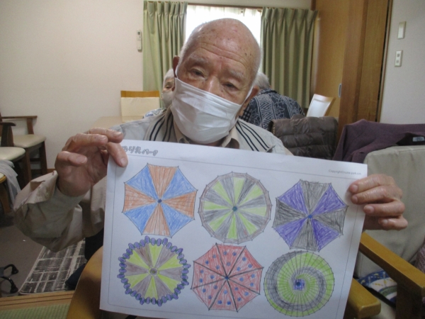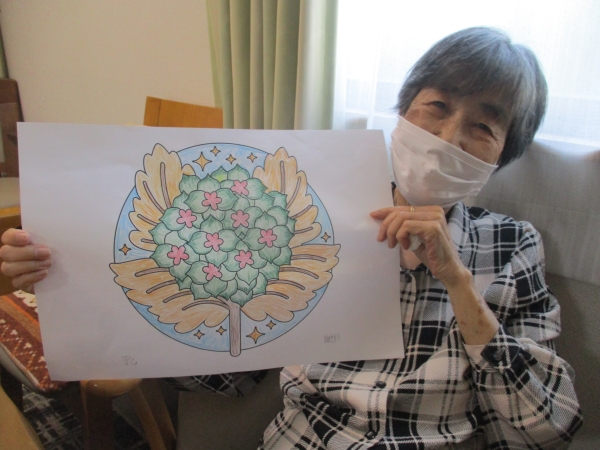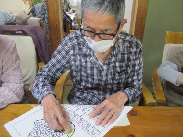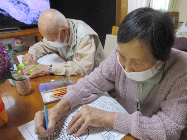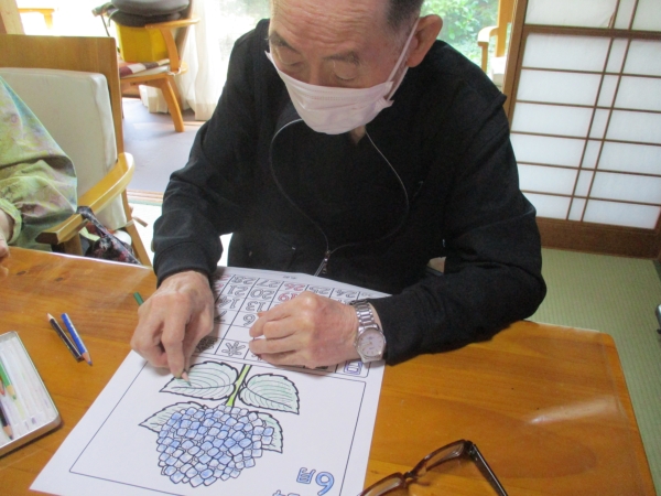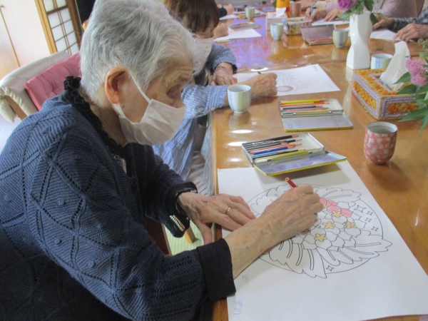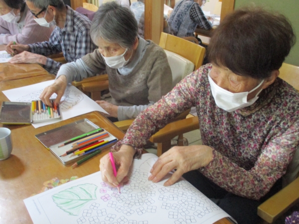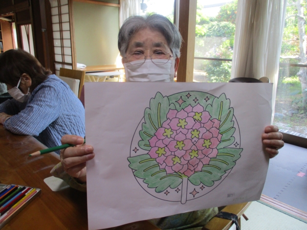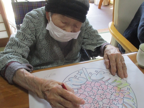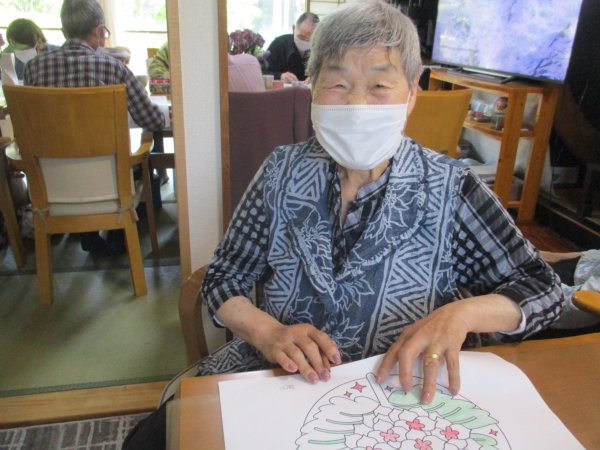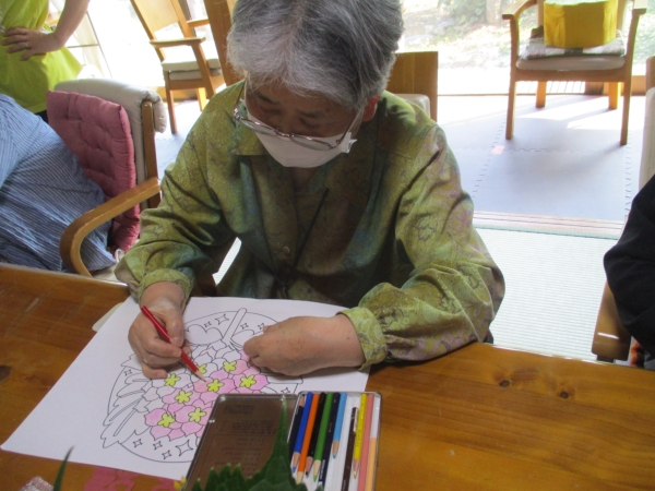 笑顔の正体は…大好きな塗り絵タイムだからなんです