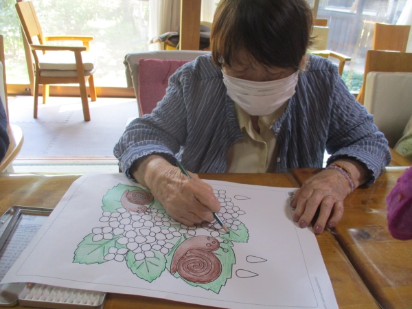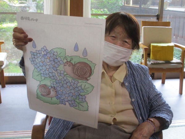 母が選んだ塗り絵は、これから訪れる梅雨を感じさせるカタツムリ🐌の