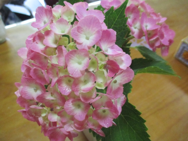 紫陽花も、ピンク色の紫陽花が、咲いてきましたうれしい顔ハートたち (複数ハート)