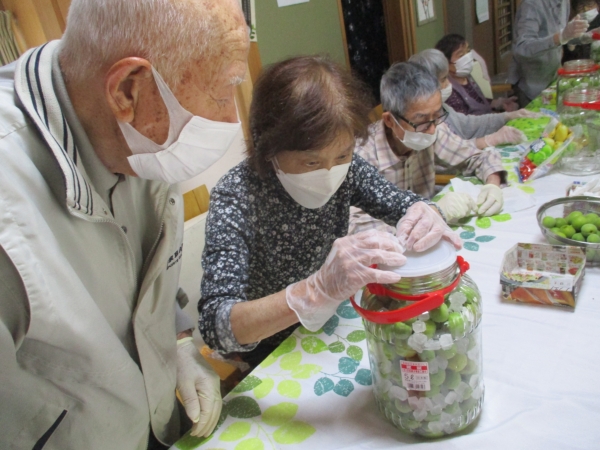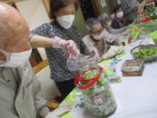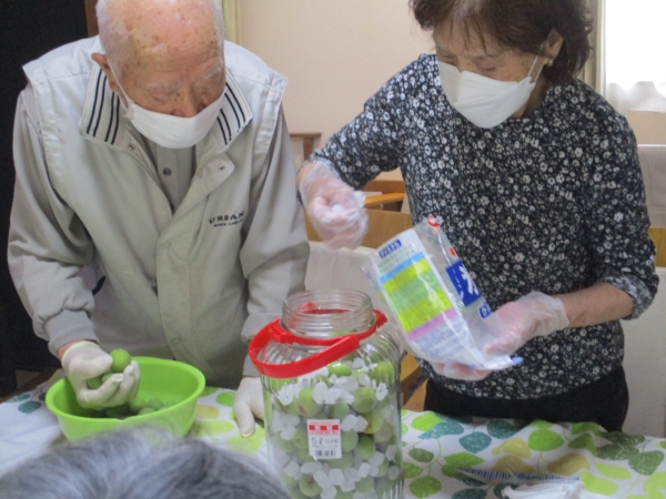 梅、氷砂糖を交互に入れていきますわーい (嬉しい顔)ハートたち (複数ハート)