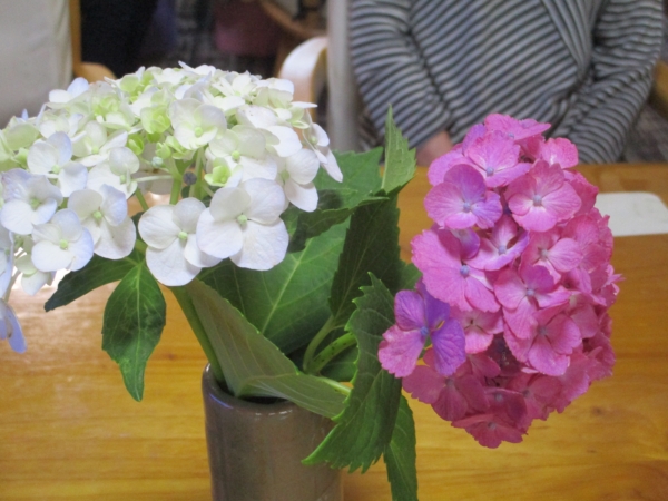テーブルでは、お庭に咲いた紫陽花が皆様をお出向かいしていますよ