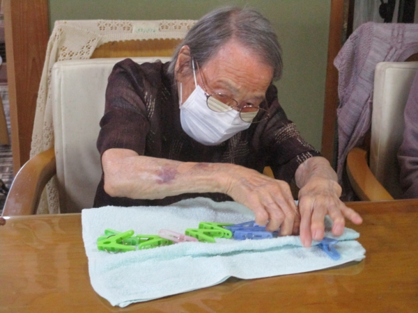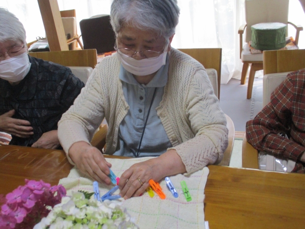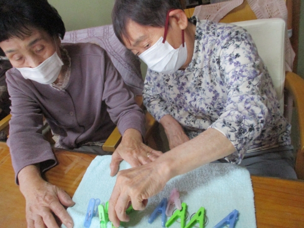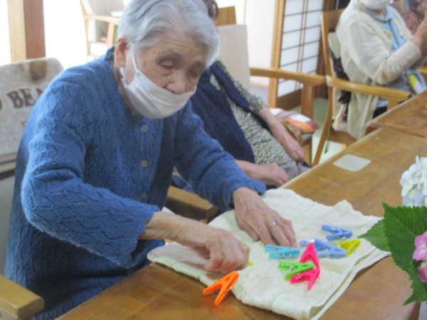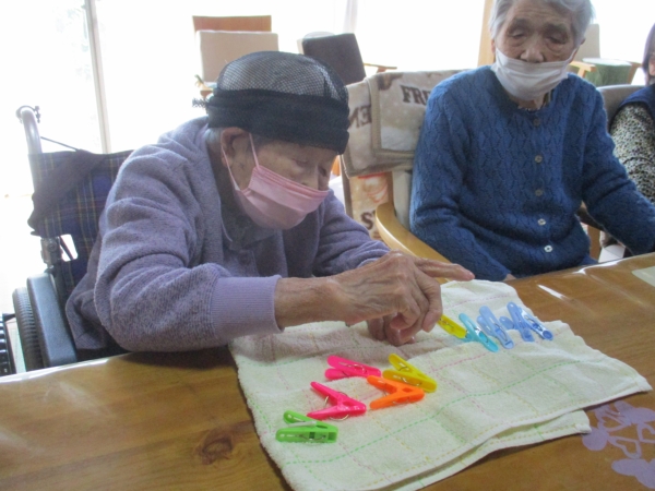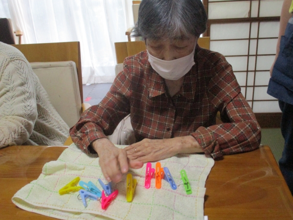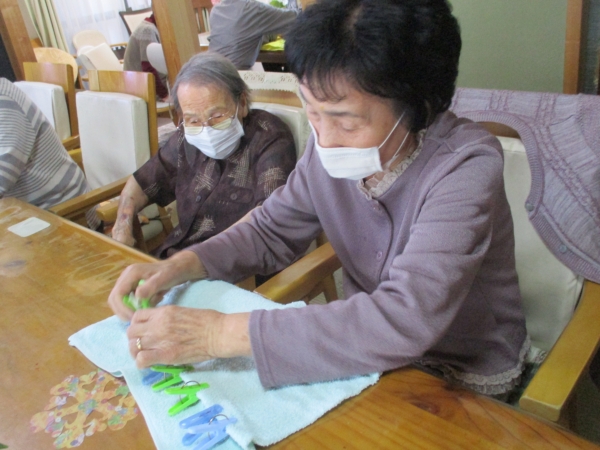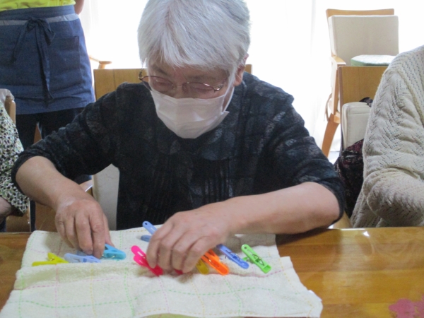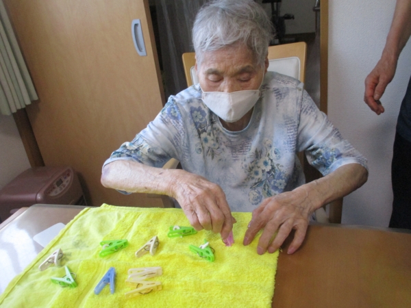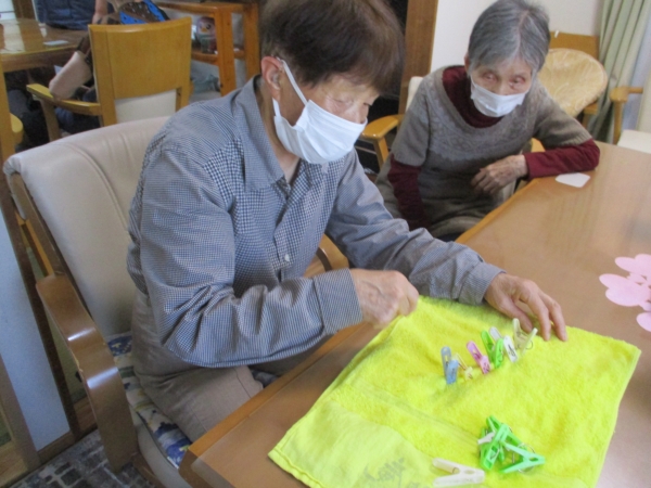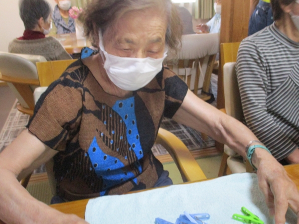 午後は、タオルと洗濯バサミを使ったゲームを行いますよ~