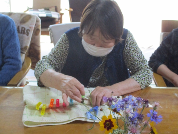 止めやすくなるようにと、タオルをつまんで直線上に止めている母達を発見