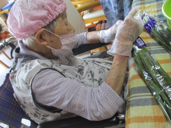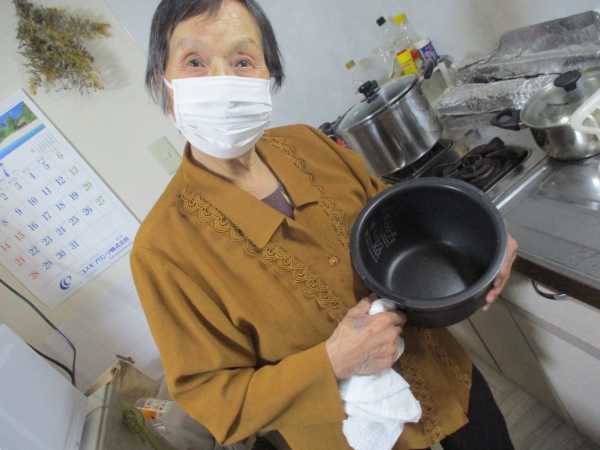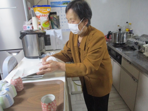 母は、昼食後休憩を取った後、必ず食器拭きのお手伝いをして下さいますほっとした顔ハートたち (複数ハート)