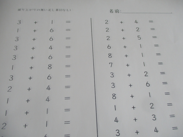 母は、計算問題3枚目が終わってしまう位のハイペースで集中して行っています