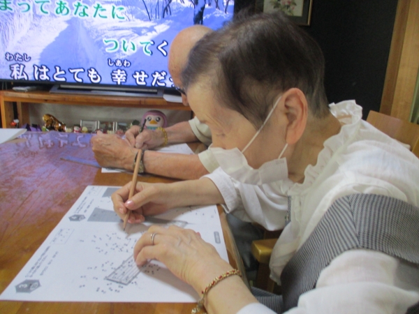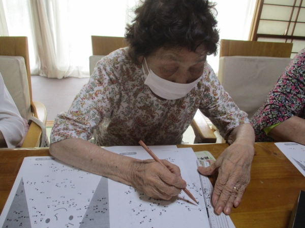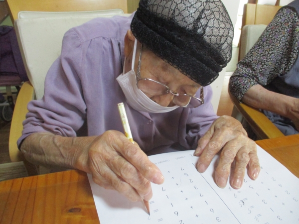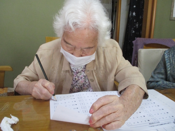 午前のレクは脳トレです