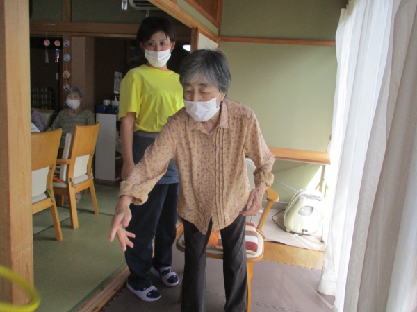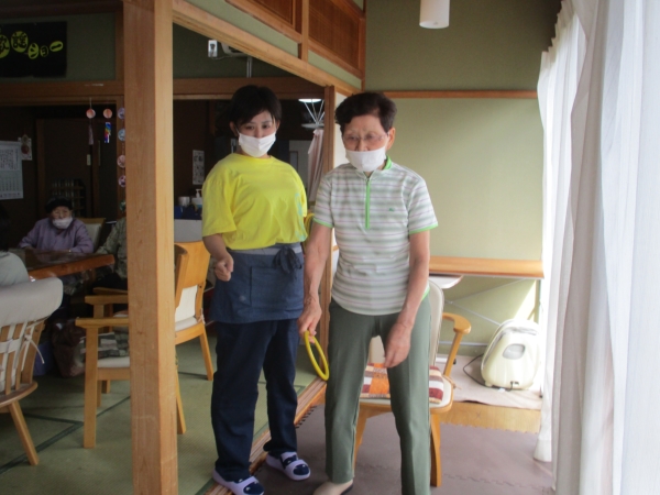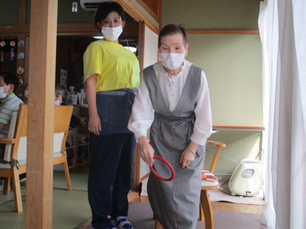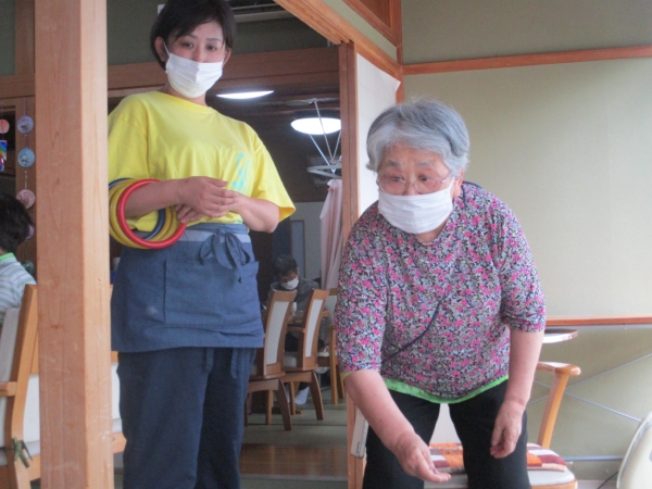 初めて輪投げをする母へは、スタッフかなちゃんより