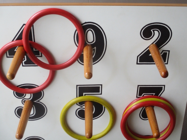 何気なく投げている母の輪は、3個の的に命中👏