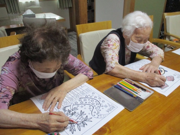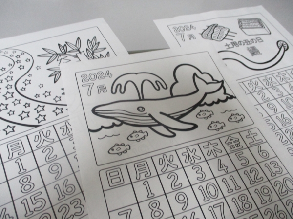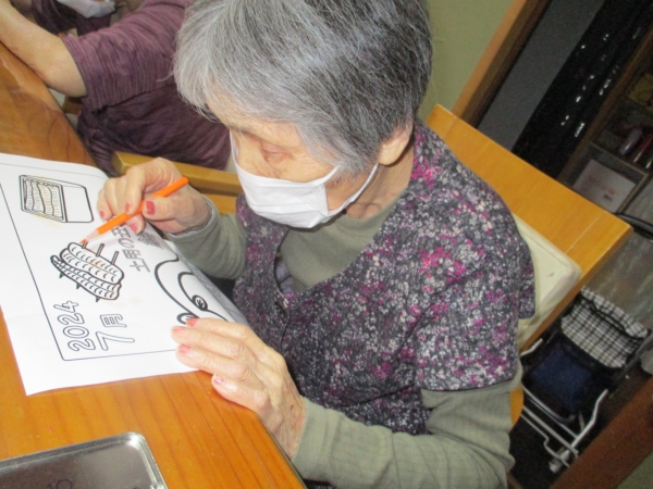 本日は、カレンダーぬり絵の時間わーい (嬉しい顔)ハートたち (複数ハート)