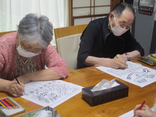 皆様、集中して塗られていますわーい (嬉しい顔)ハートたち (複数ハート)