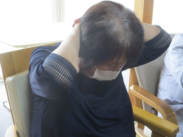 腕の筋肉が伸びて気持ちいいですねわーい (嬉しい顔)