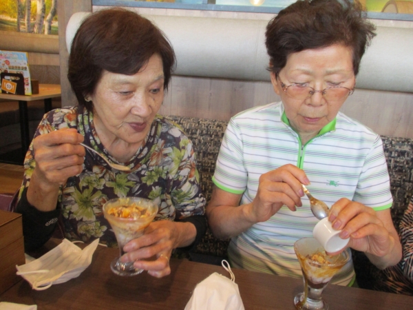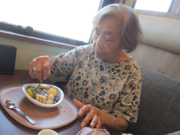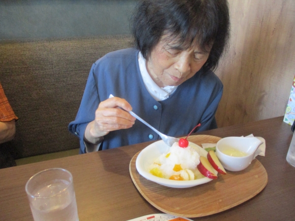フルーツが沢山乗ったかき氷を注文した母達です⇓🍧