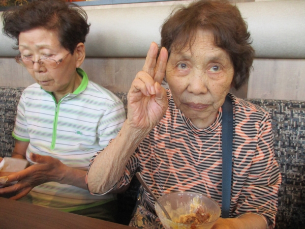 カメラを向けたら美味しいの言葉の代わりにピースで応えてくれました