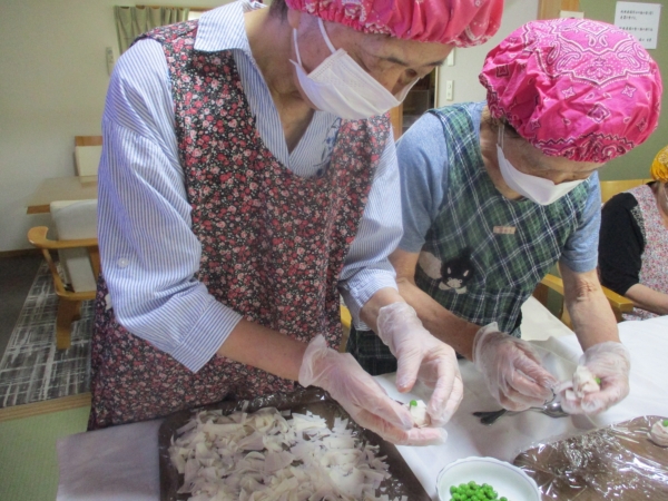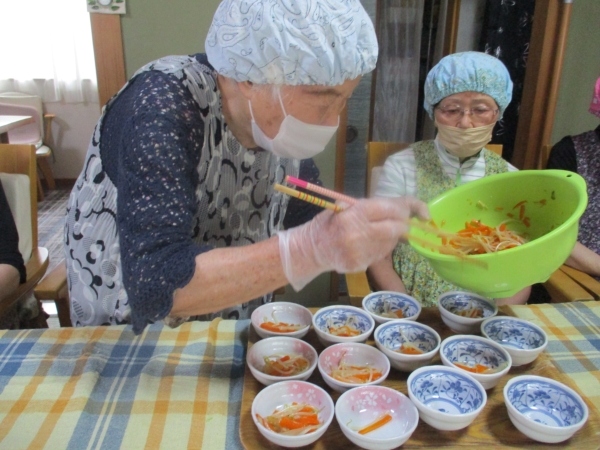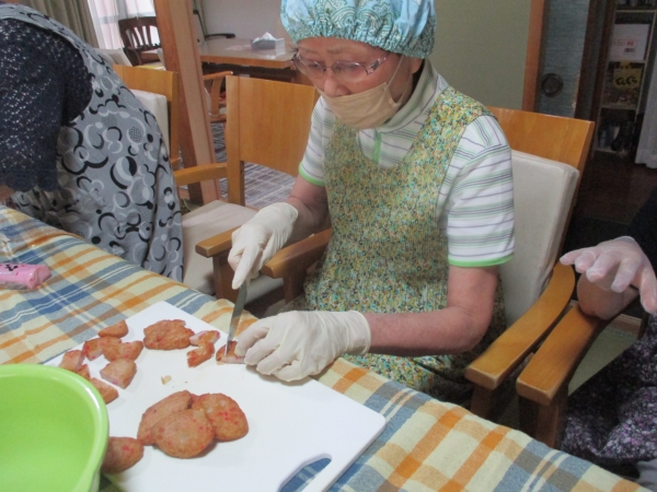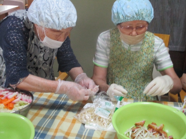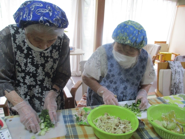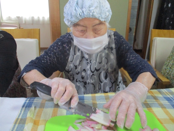 こちら↑の母達は、中華丼の具材を切っています🔪