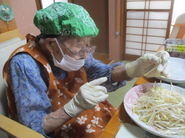 一番のお姉さん母は、ナムル用のもやしのヒゲを丁寧に取ってくれました。