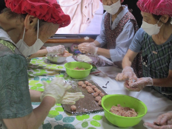 焼売の種をクルクルと手の平で丸めていきますよ~