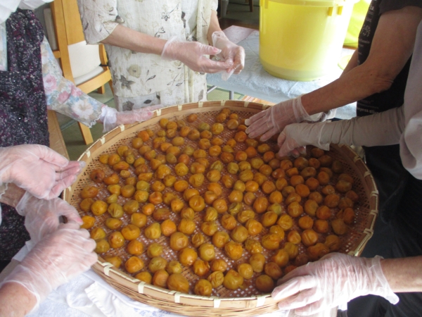 母達が一粒一粒、丁寧にザルに並べてくれました