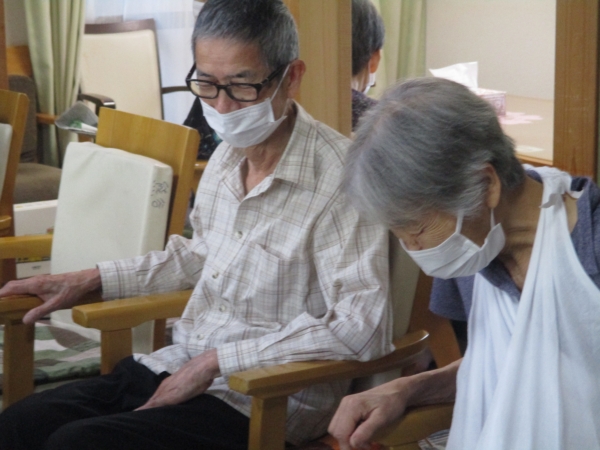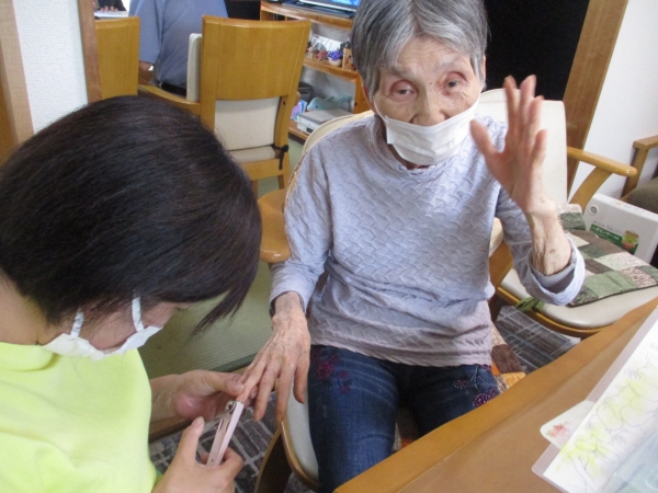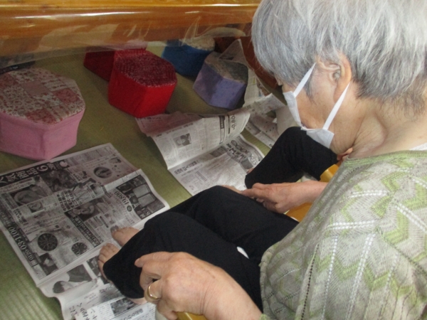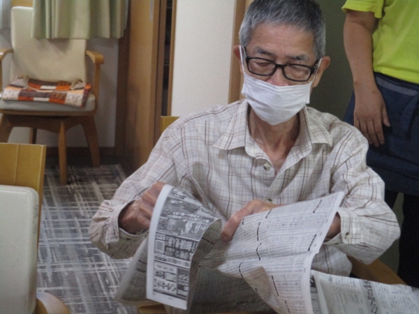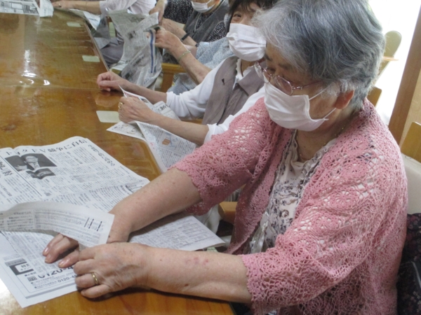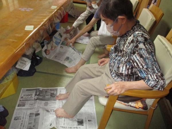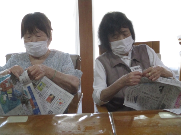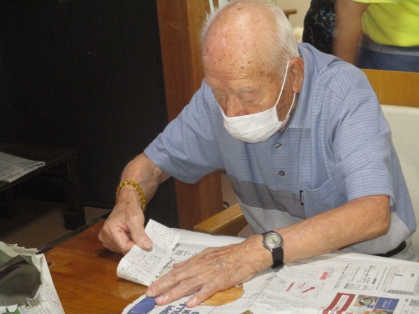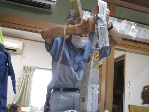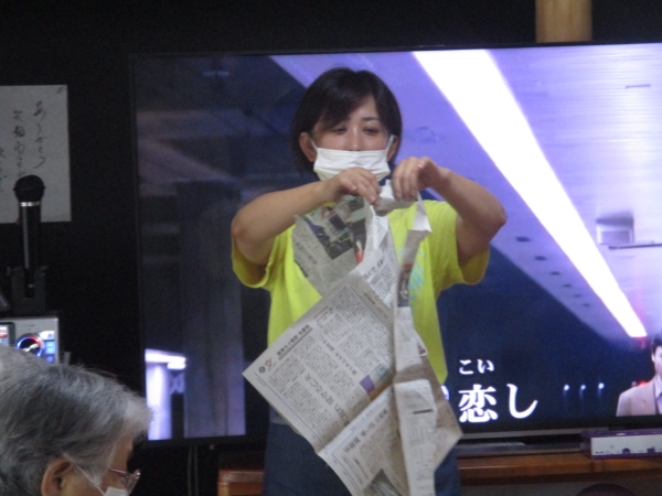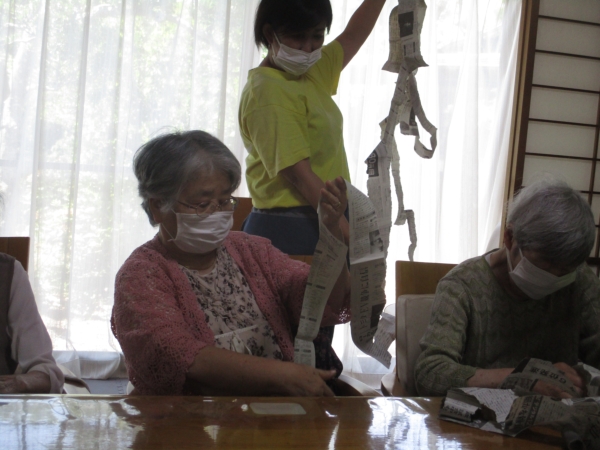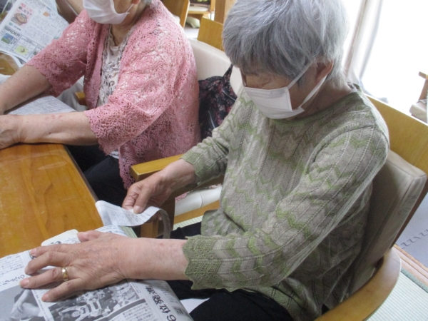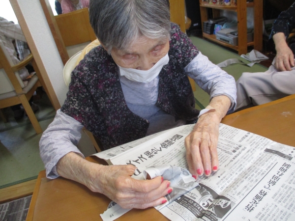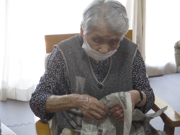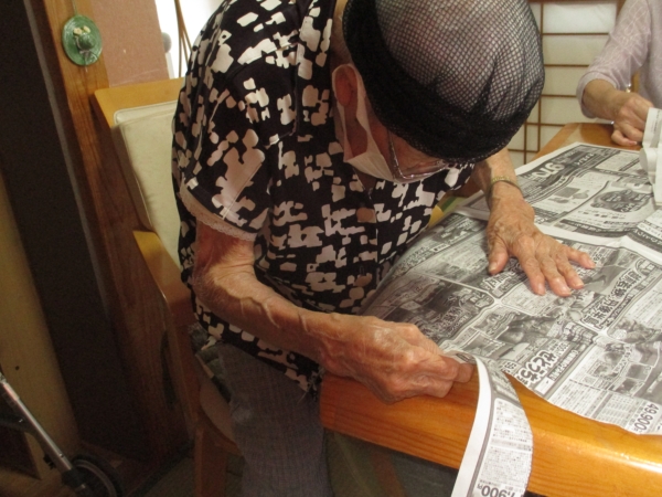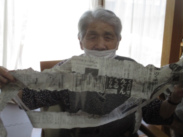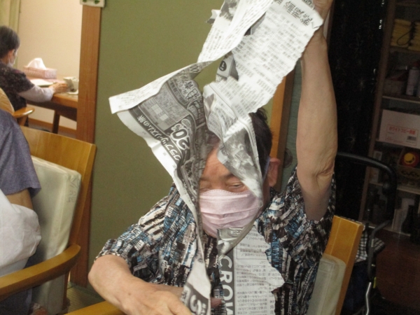 スタッフかなちゃんが新聞紙で遊んでる~っ