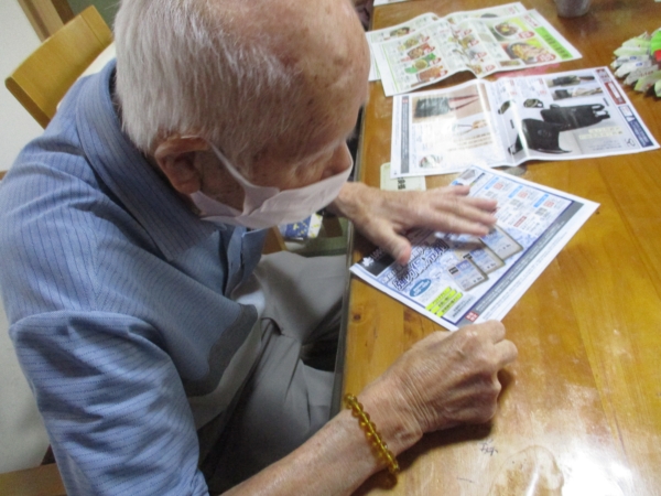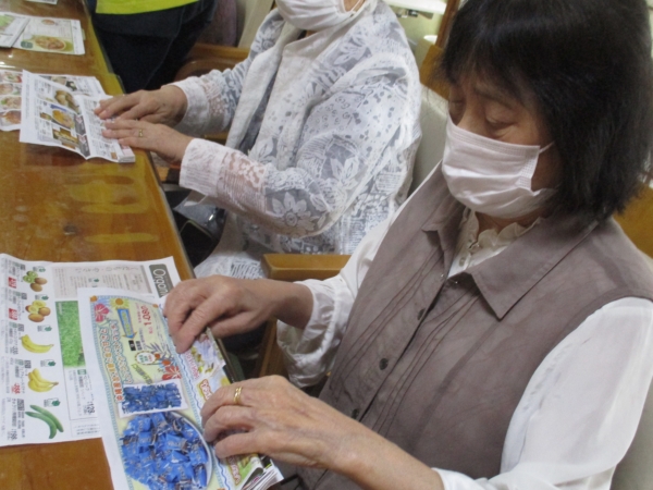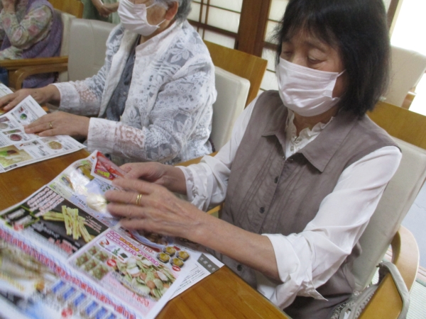 広告チラシを蛇腹折りにして折り目をつけていきます
