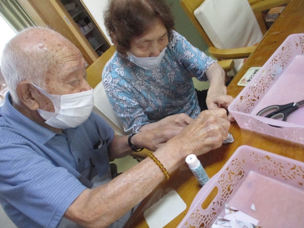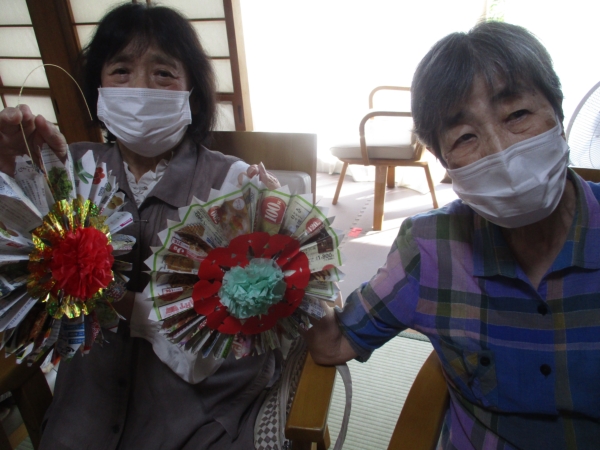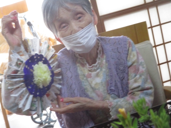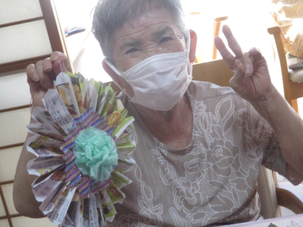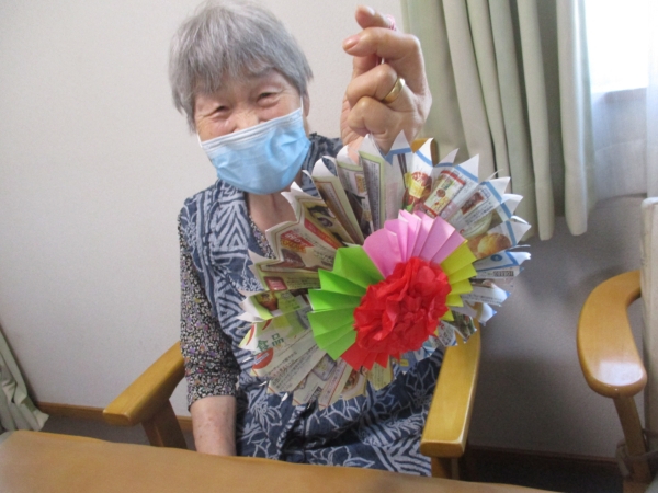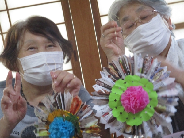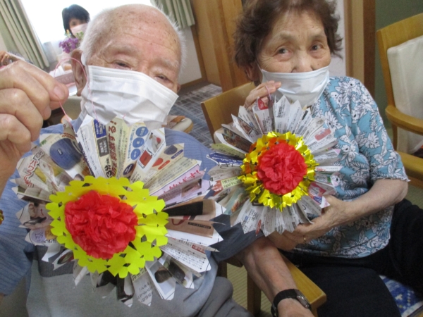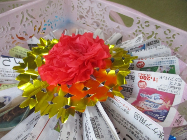 折り紙やお花紙を使って、デコレーションしていきますよ