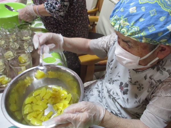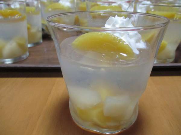 桃のゼリーを作っていきますうまい! (顔)グッド (上向き矢印)