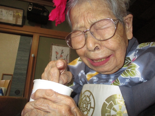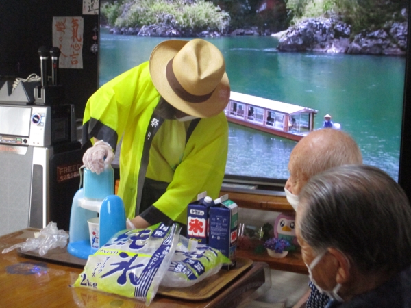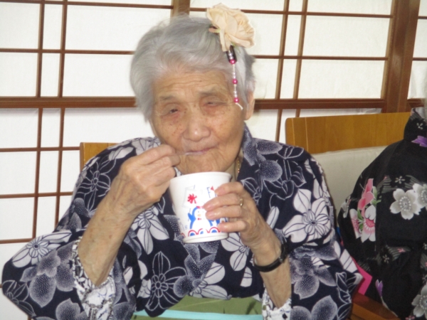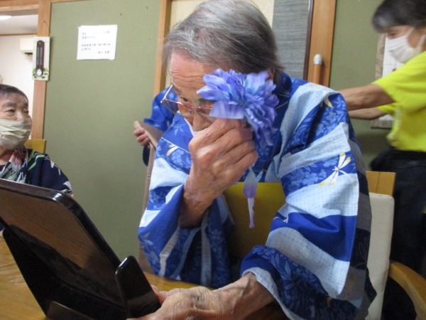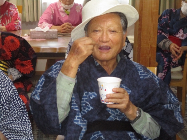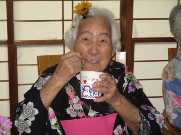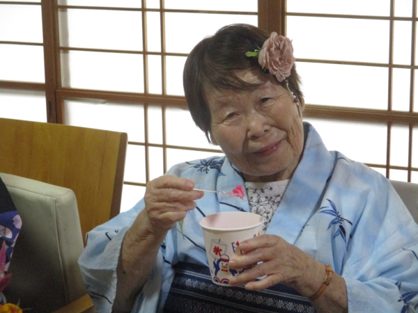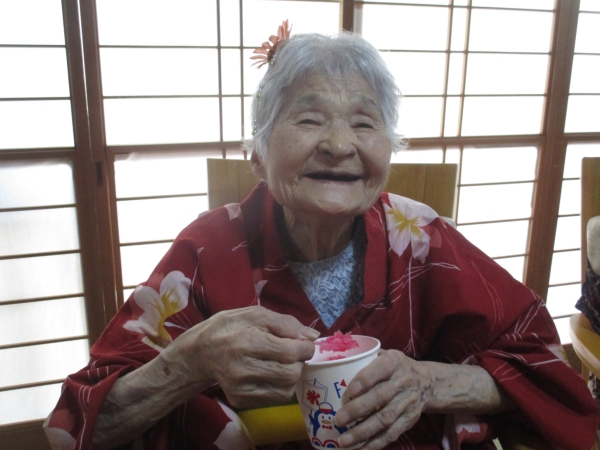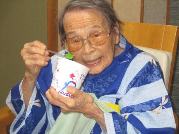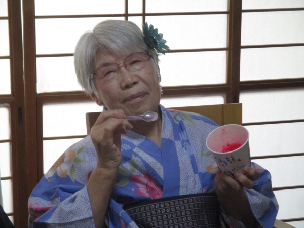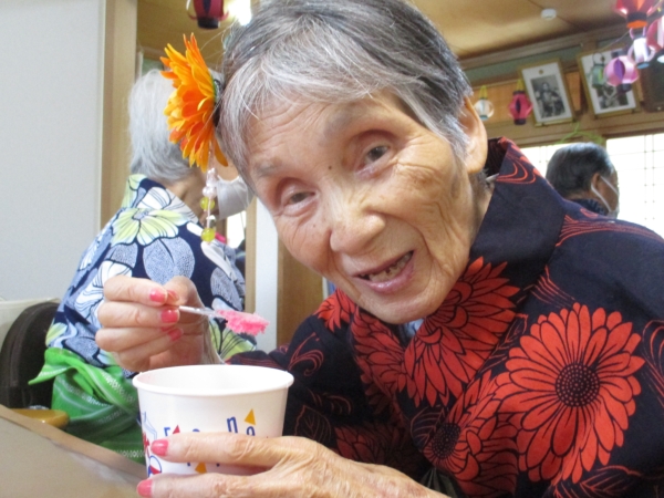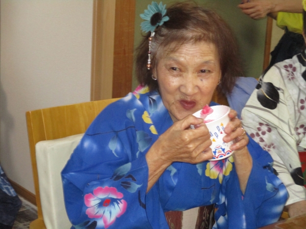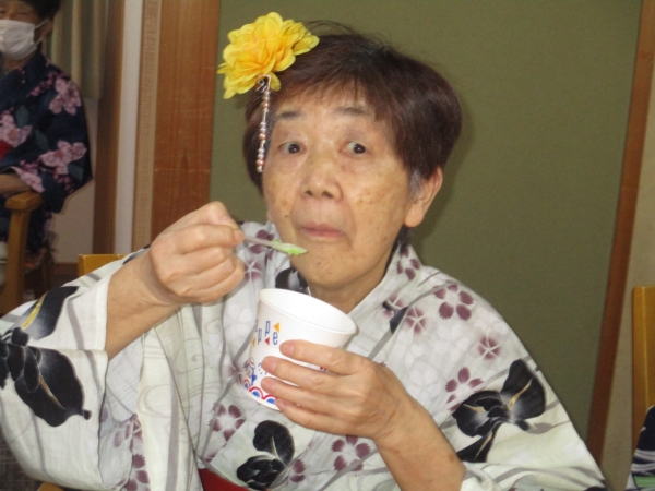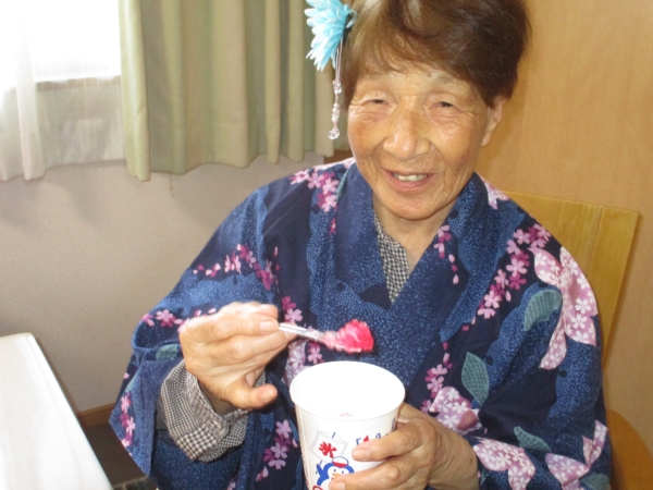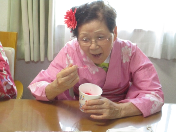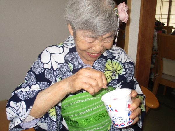 浴衣を着てかき氷を食べ…お祭り気分…ではなく