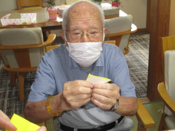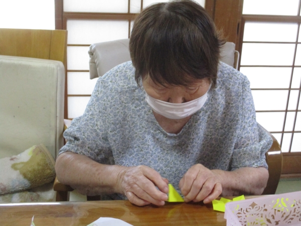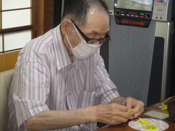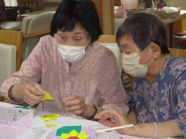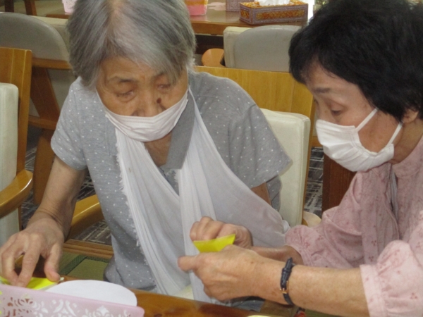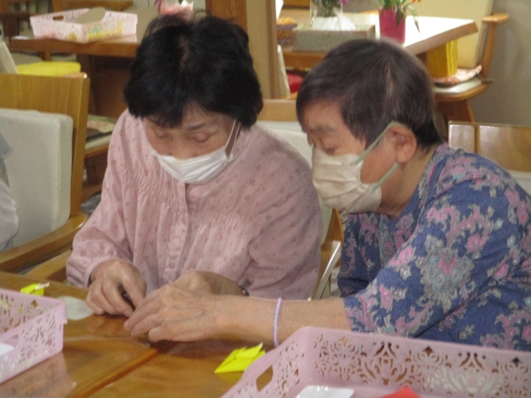 そこまで出来たら今度は午前中に黄色の折り紙で作った…
